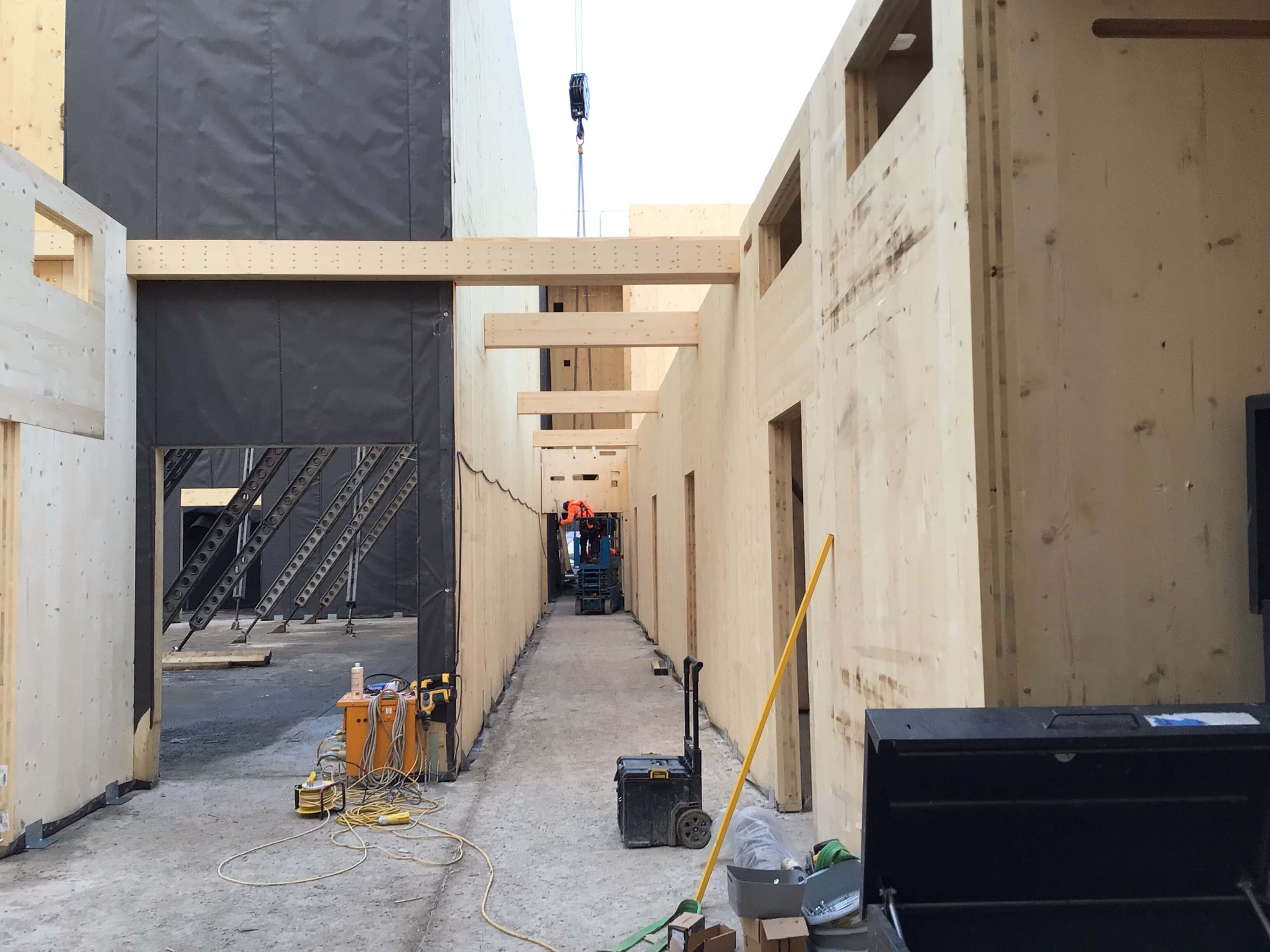 Crane lifting precast panels into place for schools at Dunfermline Learning Campus