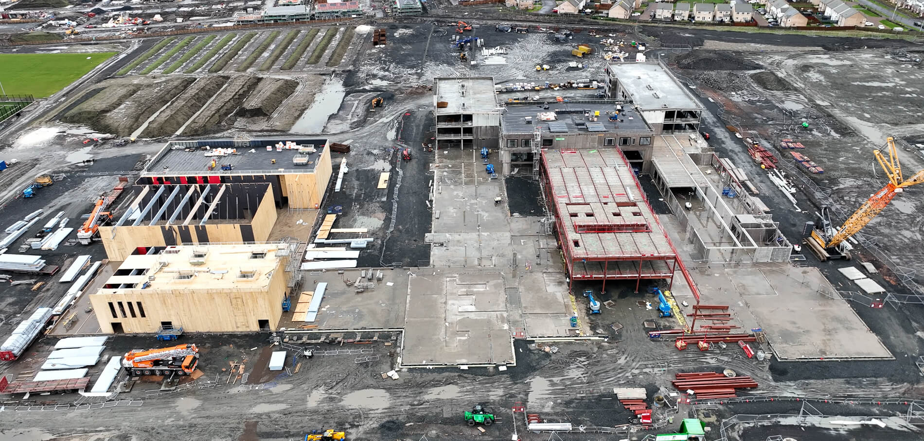 The schools at Dunfermline Learning Campus starting to take shape as more panels and beams are installed