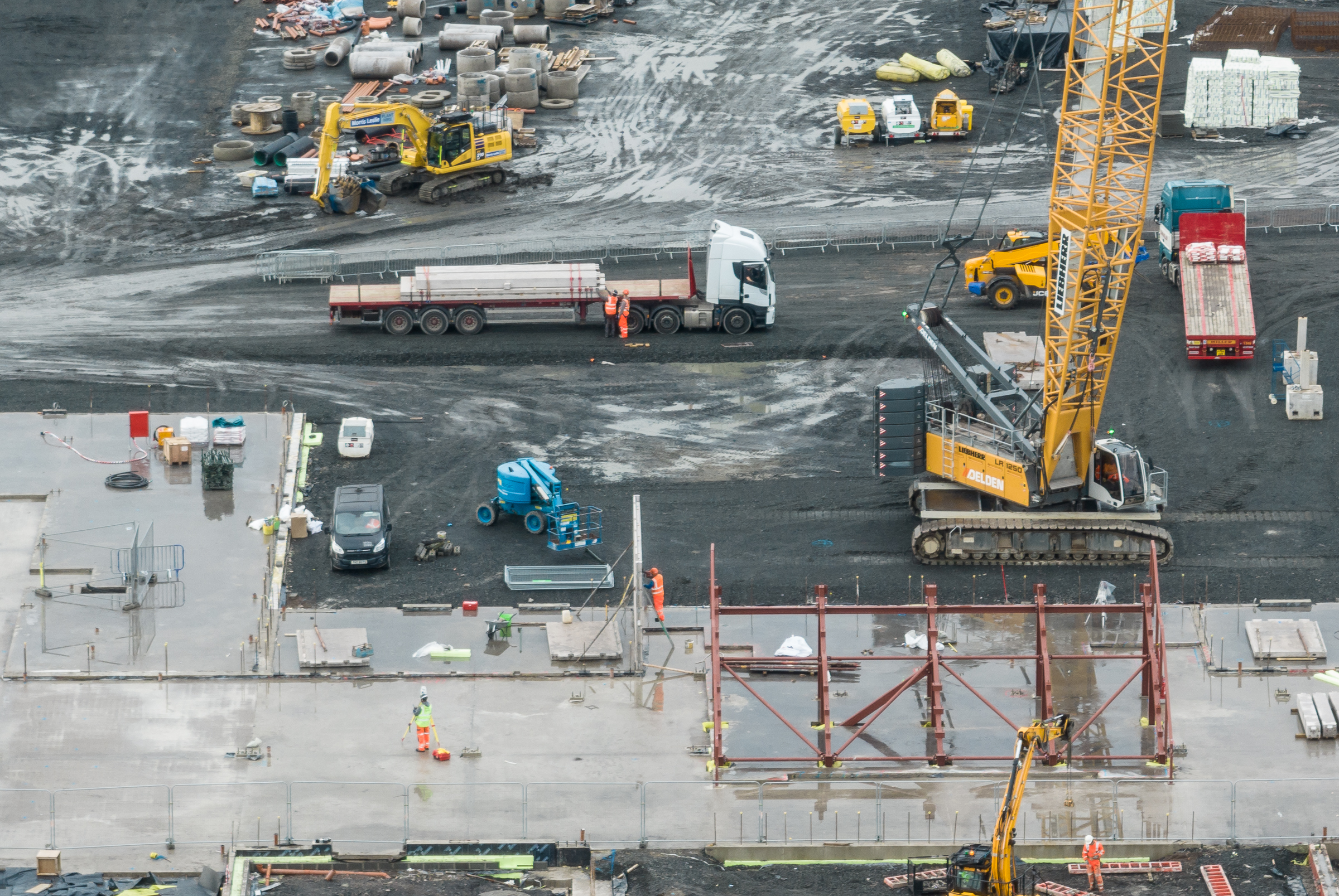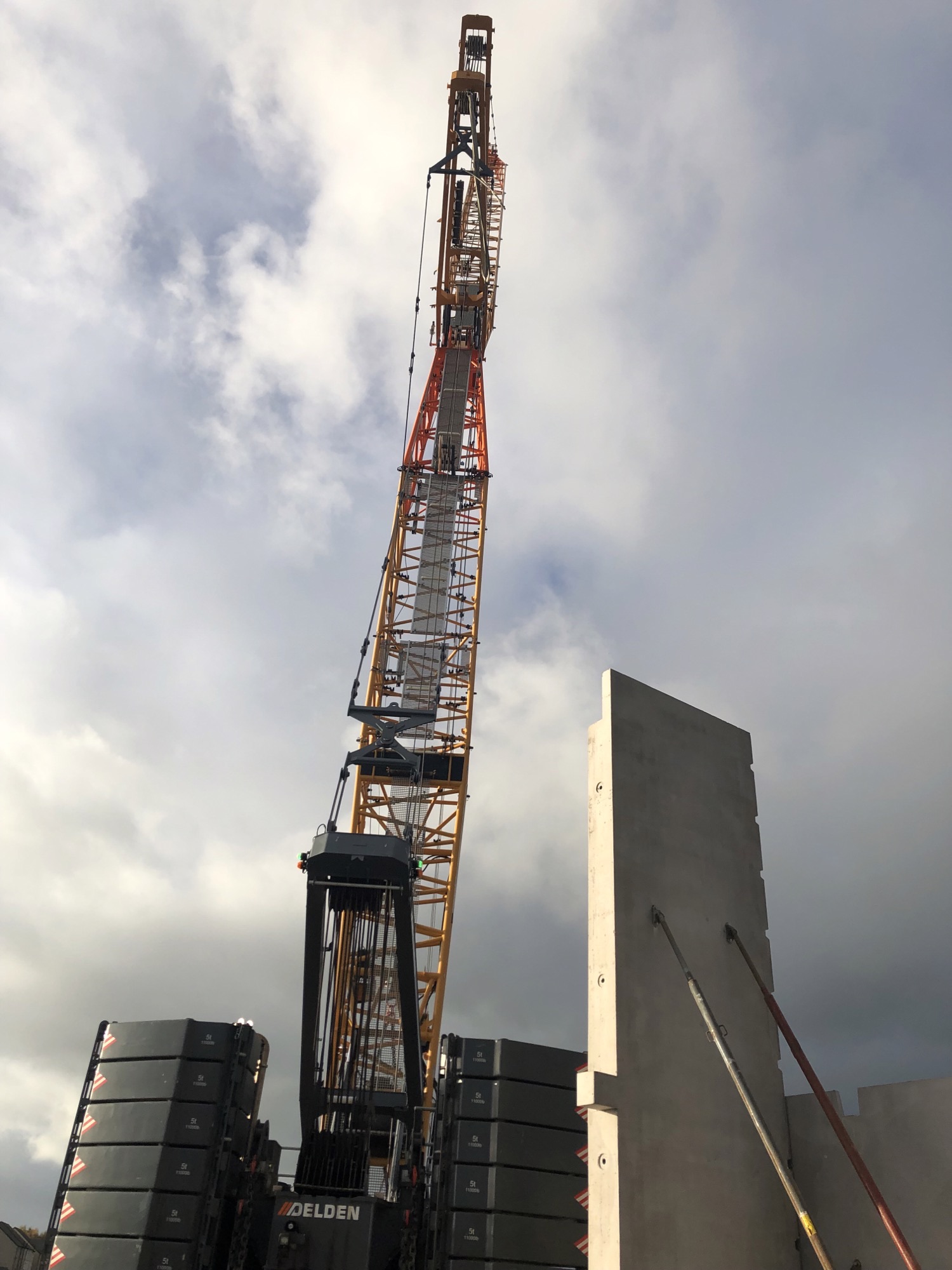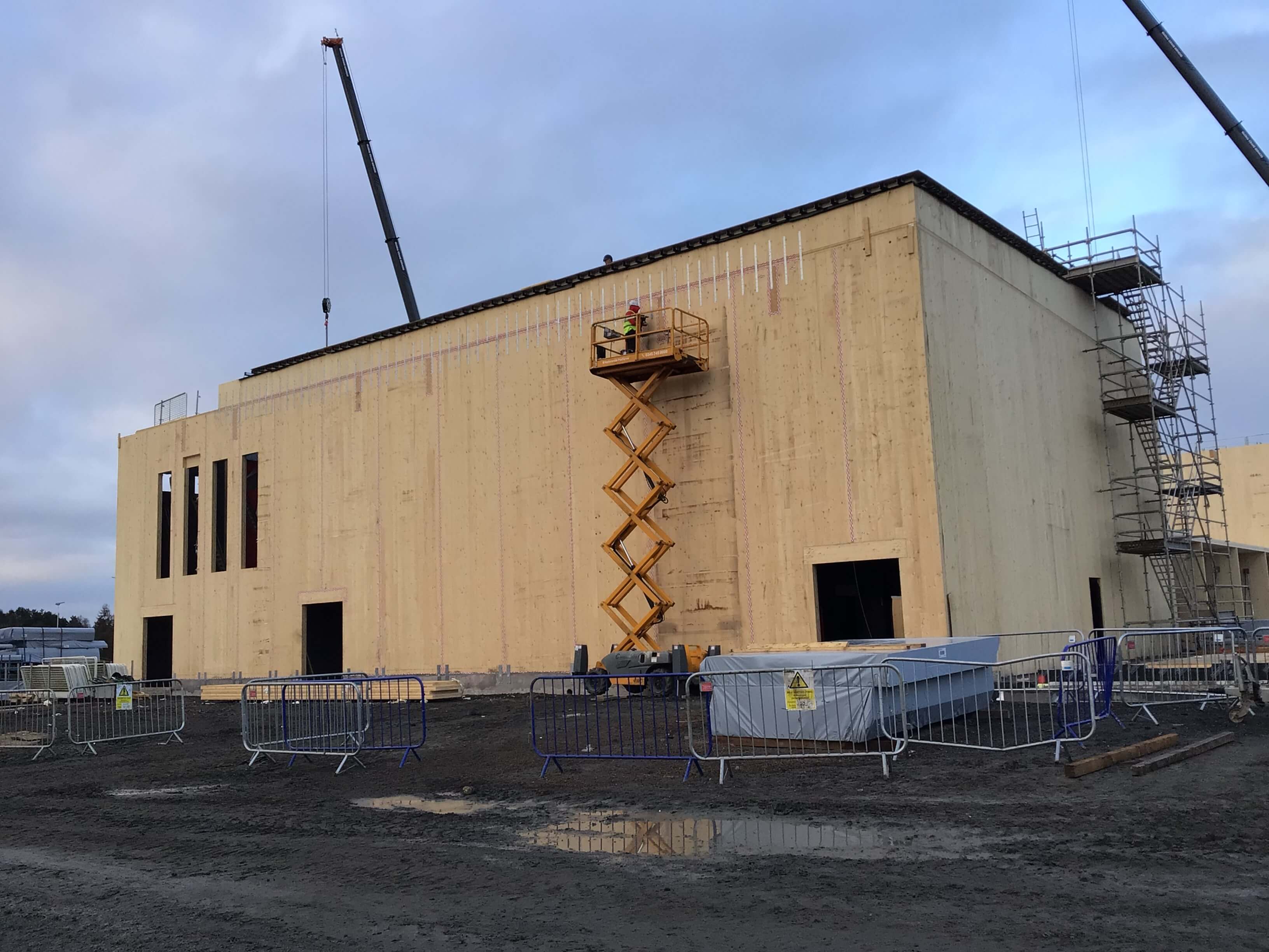 Crane lifting precast panels into place for schools at Dunfermline Learning Campus